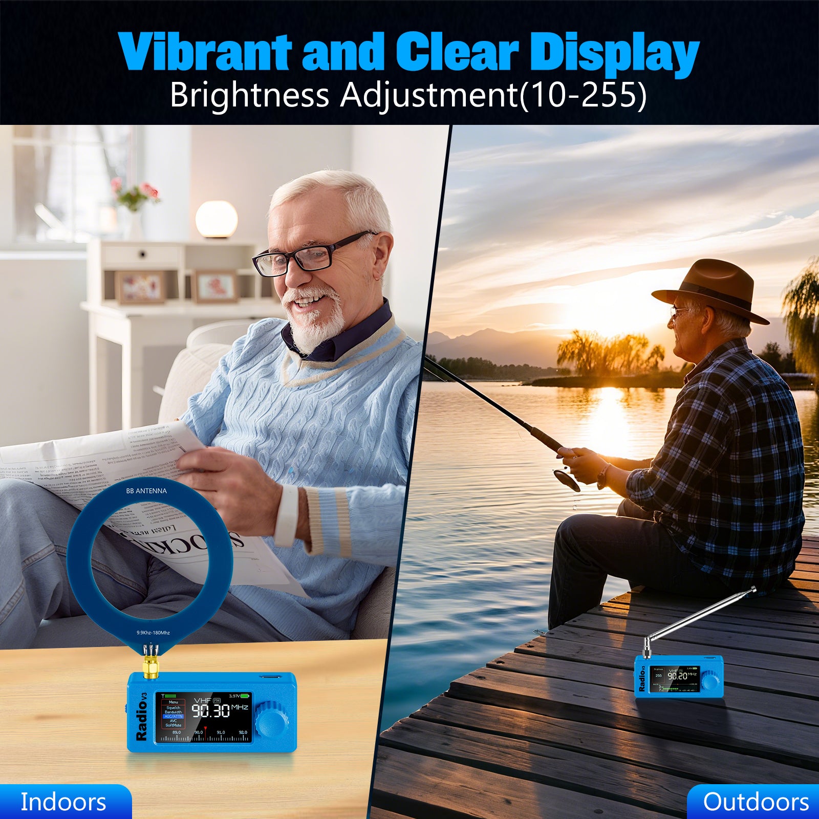 Vibrant and Clear Display: Despite its small size, the GOOZEEZOO full band radio receiver is equipped with a bright and clear 1.9-inch IPS color screen,and the brightness can be adjusted, making it suitable for both indoor and outdoor use. This makes navigating settings and frequency information straightforward and visually appealing. The device also features an 800mAh battery, providing long battery life(10 hours) to support extended listening sessions without the constant need for recharging