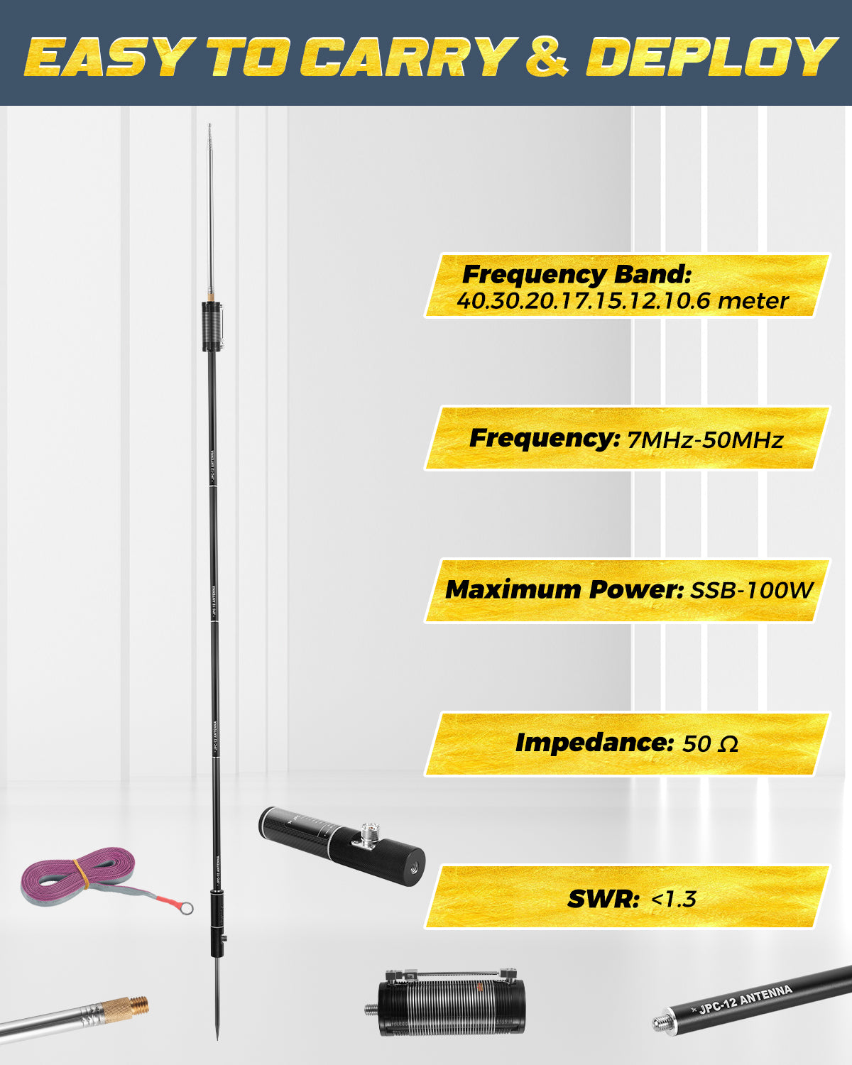 - 【Enhanced Performance & Excellent Reception】 The JPC-12 ham radio hf antenna offers optimal signal reception and transmission with its low standing wave ratio (SWR) and efficient design, providing reliable performance and improved efficiency for both seasoned enthusiasts and beginners. Designed for transmitting and receiving HF and VHF radio signals, it is fully compatible with all Amateur Radio transceivers, enhancing your signal without needing an analyzer or tuner, though these can be beneficial