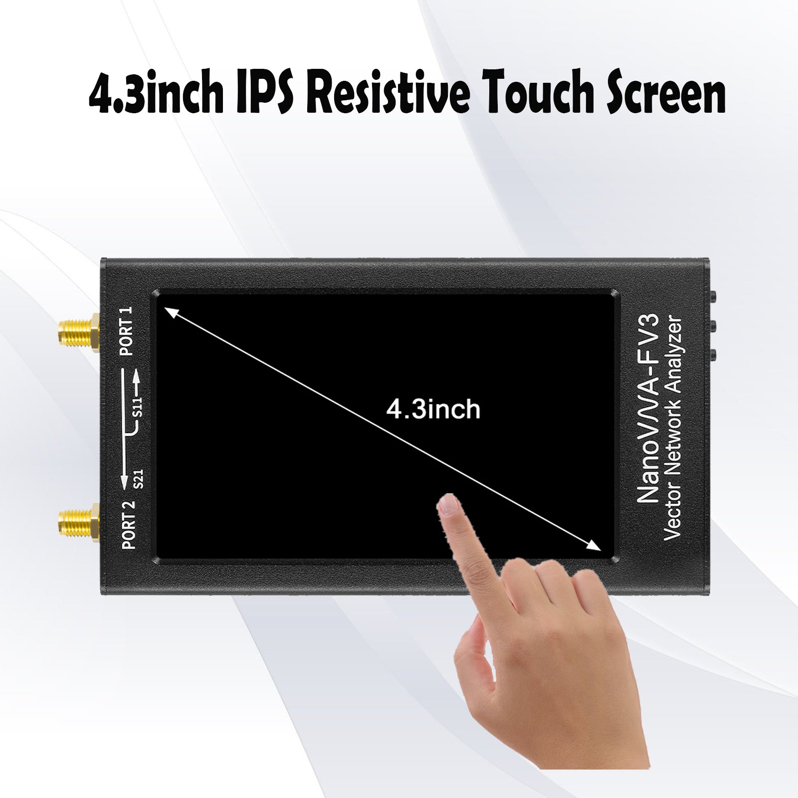 - 【Large Screen & Long Standby Time】The nanovna antenna analyzer adopts a 4.3 inch high brightness IPS resistive touch screen, which is sensitive to touch and responsive. Equipped with a protective film to protect the screen, the stylus makes it more convenient for you to use. The NanoVNA-V3 has 4500mAh lithium-ion batteries with a battery life of up to 5 hours. The charging interface is USB Type-C, and the Type-C cable can be used to charge the device and also for data transfer