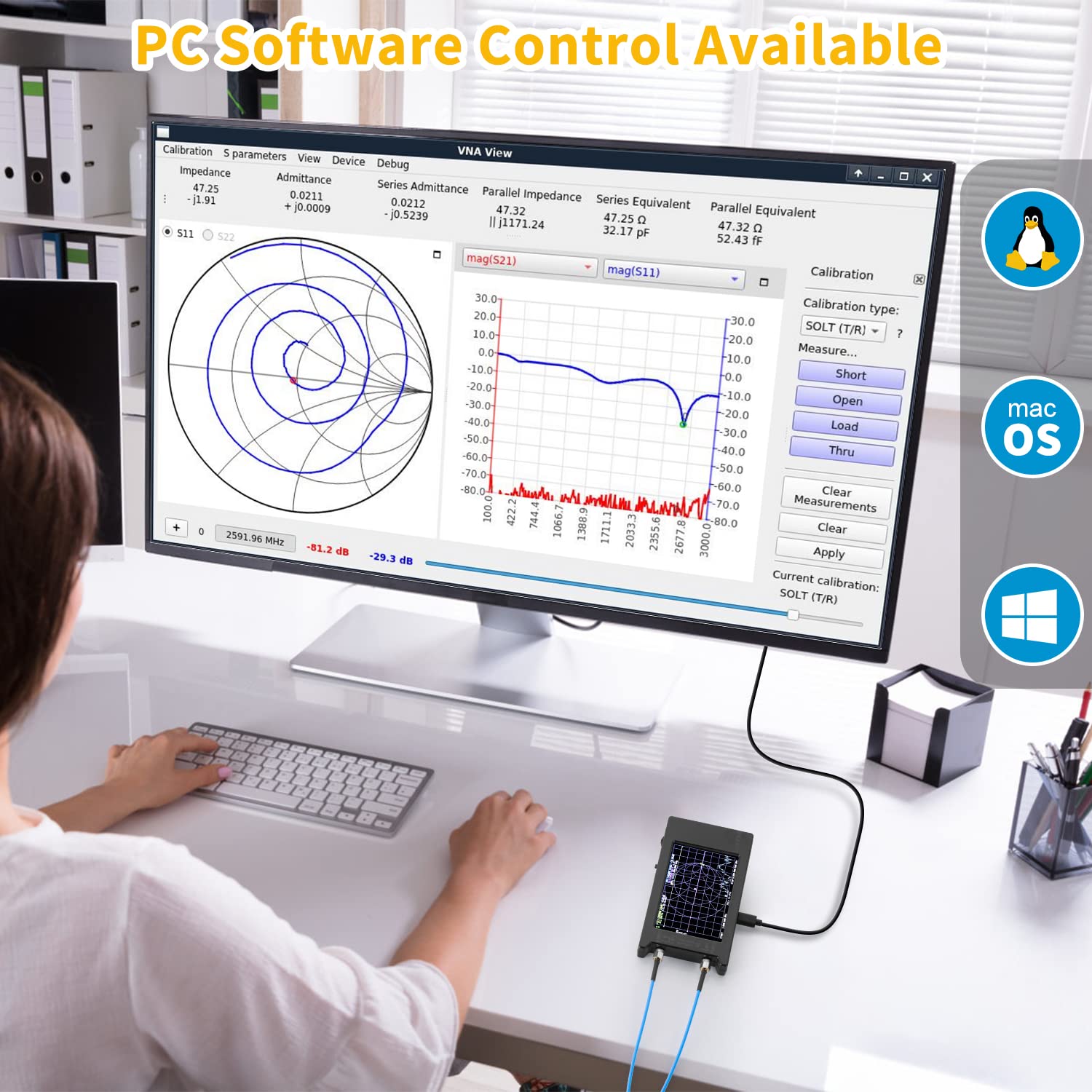 - 【PC CONTROL】The upgraded nano vna analyzer supports PC control, compatible with Linux, Windows (7+), and Mac OS (10.11+). Can export Touchstone (snp) files for various radio design and simulation software through PC software